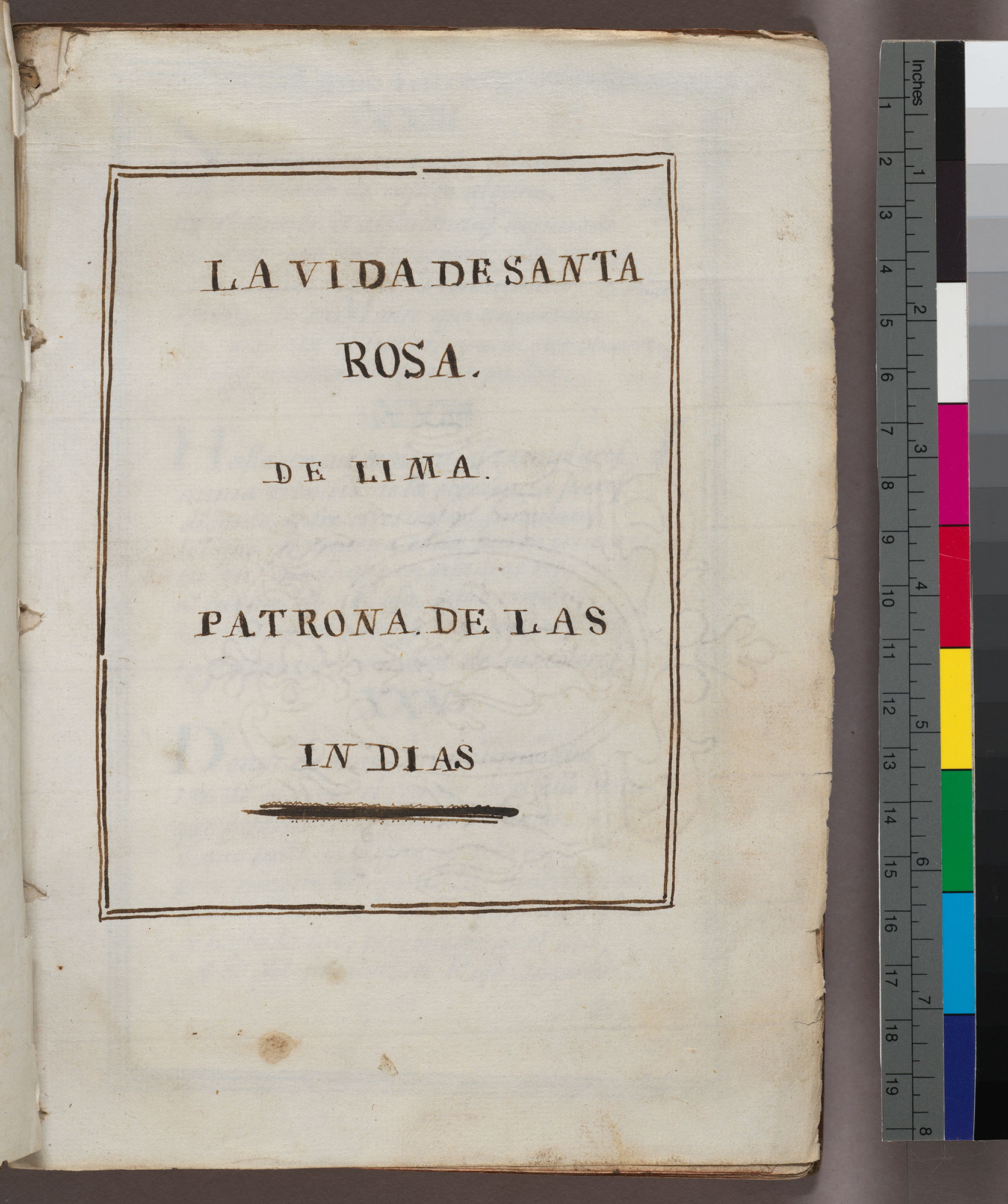 MSH/LAT 0001, Caja 1, Carpeta 33 (se guarda por separado). Manuscrito, Luis Antonio de Oviedo y Herrera, “La Vida de Santa Rosa de Lima […]”, siglo XVIII.